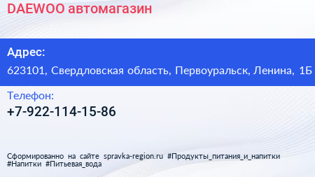 DAEWOO, автомагазин по адресу 623101, Свердловская область, Первоуральск, Ленина, 1Б в дальнейшем Организация, размещена в следующих категориях:
