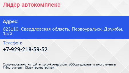 Лидер, автокомплекс по адресу 623110, Свердловская область, Первоуральск, Дружбы, 1а/3 в дальнейшем Организация, размещена в следующих категориях: