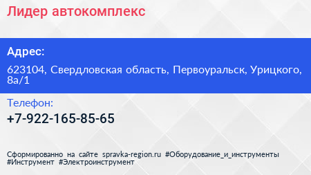 Лидер, автокомплекс по адресу 623104, Свердловская область, Первоуральск, Урицкого, 8а/1 в дальнейшем Организация, размещена в следующих категориях: