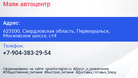 Маяк, автоцентр по адресу 623100, Свердловская область, Первоуральск, Московское шоссе, ст4 в дальнейшем Организация, размещена в следующих категориях: