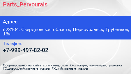 Parts_Pervourals по адресу 623104, Свердловская область, Первоуральск, Трубников, 18а в дальнейшем Организация, размещена в следующих категориях: