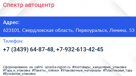 Спектр, автоцентр по адресу 623101, Свердловская область, Первоуральск, Ленина, 53 в дальнейшем Организация, размещена в следующих категориях: