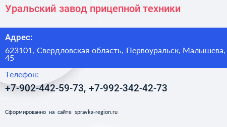 Уральский завод прицепной техники по адресу 623101, Свердловская область, Первоуральск, Малышева, 45 в дальнейшем Организация, размещена в следующих категориях: