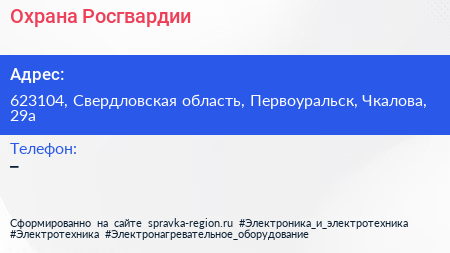 Охрана Росгвардии по адресу 623104, Свердловская область, Первоуральск, Чкалова, 29а в дальнейшем Организация, размещена в следующих категориях: