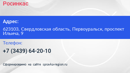 Росинкас по адресу 623103, Свердловская область, Первоуральск, проспект Ильича, 9 в дальнейшем Организация, размещена в следующих категориях: