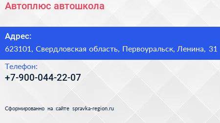 Автоплюс, автошкола по адресу 623101, Свердловская область, Первоуральск, Ленина, 31 в дальнейшем Организация, размещена в следующих категориях:
