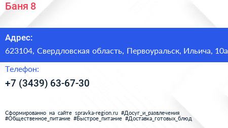 Баня №8 по адресу 623104, Свердловская область, Первоуральск, Ильича, 10а в дальнейшем Организация, размещена в следующих категориях: