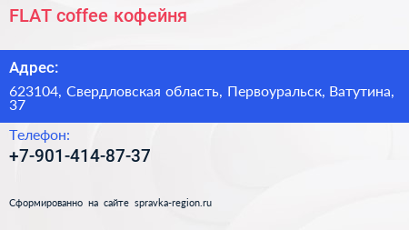 FLAT coffee, кофейня по адресу 623104, Свердловская область, Первоуральск, Ватутина, 37 в дальнейшем Организация, размещена в следующих категориях: