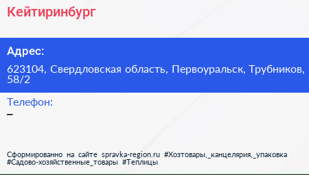 Кейтиринбург по адресу 623104, Свердловская область, Первоуральск, Трубников, 58/2 в дальнейшем Организация, размещена в следующих категориях: