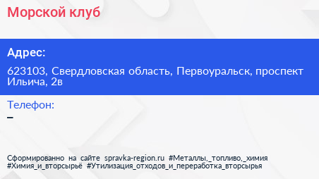 Морской клуб по адресу 623103, Свердловская область, Первоуральск, проспект Ильича, 2в в дальнейшем Организация, размещена в следующих категориях: