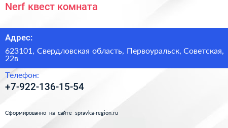 Nerf, квест-комната по адресу 623101, Свердловская область, Первоуральск, Советская, 22в в дальнейшем Организация, размещена в следующих категориях:
