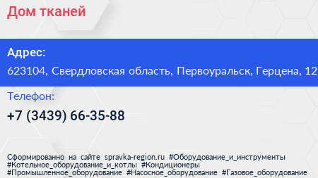 Дом тканей по адресу 623104, Свердловская область, Первоуральск, Герцена, 12 в дальнейшем Организация, размещена в следующих категориях: