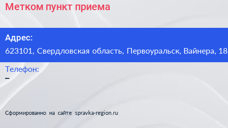 Метком, пункт приема по адресу 623101, Свердловская область, Первоуральск, Вайнера, 18 в дальнейшем Организация, размещена в следующих категориях: