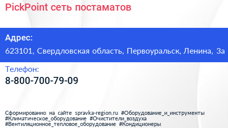 PickPoint, сеть постаматов по адресу 623101, Свердловская область, Первоуральск, Ленина, 3а в дальнейшем Организация, размещена в следующих категориях: