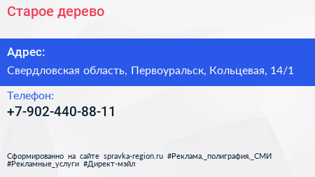 Старое дерево по адресу Свердловская область, Первоуральск, Кольцевая, 14/1 в дальнейшем Организация, размещена в следующих категориях: