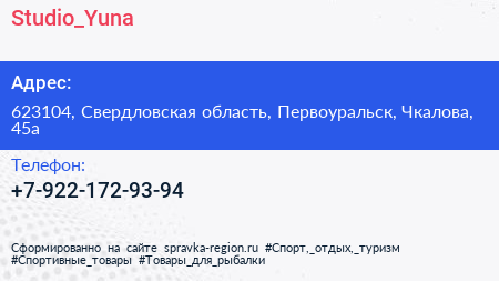 Studio_Yuna по адресу 623104, Свердловская область, Первоуральск, Чкалова, 45а в дальнейшем Организация, размещена в следующих категориях: