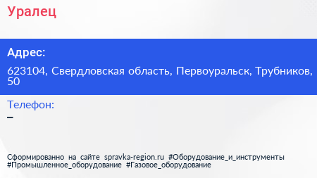 Уралец по адресу 623104, Свердловская область, Первоуральск, Трубников, 50 в дальнейшем Организация, размещена в следующих категориях: