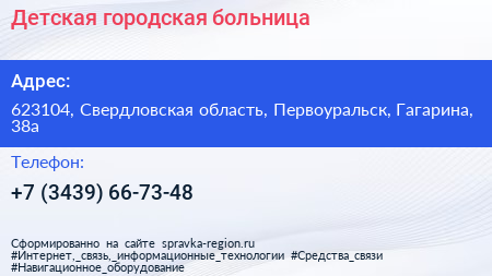 Детская городская больница по адресу 623104, Свердловская область, Первоуральск, Гагарина, 38а в дальнейшем Организация, размещена в следующих категориях: