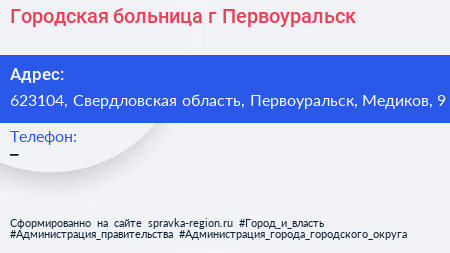 Городская больница г. Первоуральск по адресу 623104, Свердловская область, Первоуральск, Медиков, 9 в дальнейшем Организация, размещена в следующих категориях: