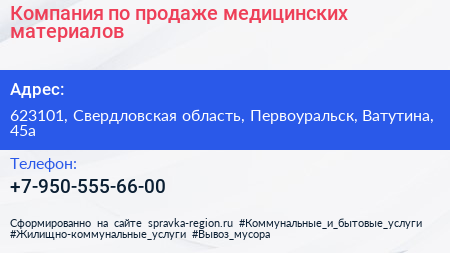 Компания по продаже медицинских материалов по адресу 623101, Свердловская область, Первоуральск, Ватутина, 45а в дальнейшем Организация, размещена в следующих категориях: