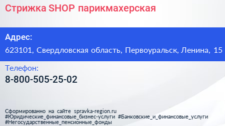 Стрижка-SHOP, парикмахерская по адресу 623101, Свердловская область, Первоуральск, Ленина, 15 в дальнейшем Организация, размещена в следующих категориях: