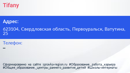 Tifany по адресу 623104, Свердловская область, Первоуральск, Ватутина, 25 в дальнейшем Организация, размещена в следующих категориях: