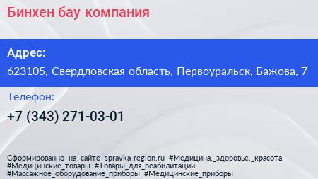 Бинхен бау, компания по адресу 623105, Свердловская область, Первоуральск, Бажова, 7 в дальнейшем Организация, размещена в следующих категориях: