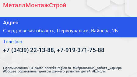 МеталлМонтажСтрой по адресу Свердловская область, Первоуральск, Вайнера, 2Б в дальнейшем Организация, размещена в следующих категориях: