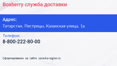 Boxberry, служба доставки по адресу Татарстан, Пестрецы, Казанская улица, 1а в дальнейшем Организация, размещена в следующих категориях: