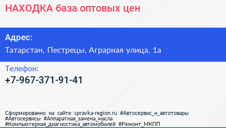 НАХОДКА, база оптовых цен по адресу Татарстан, Пестрецы, Аграрная улица, 1а в дальнейшем Организация, размещена в следующих категориях: