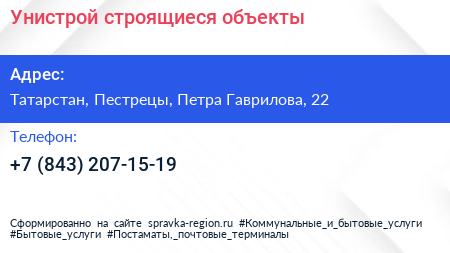 Унистрой, строящиеся объекты по адресу Татарстан, Пестрецы, Петра Гаврилова, 22 в дальнейшем Организация, размещена в следующих категориях: