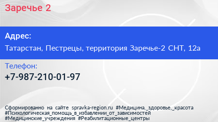 Заречье-2 по адресу Татарстан, Пестрецы, территория Заречье-2 СНТ, 12а в дальнейшем Организация, размещена в следующих категориях: