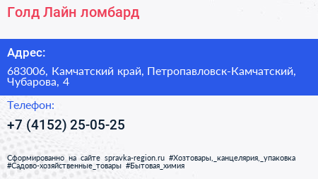 Голд Лайн, ломбард по адресу 683006, Камчатский край, Петропавловск-Камчатский, Чубарова, 4 в дальнейшем Организация, размещена в следующих категориях: