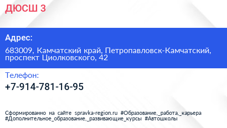 ДЮСШ №3 по адресу 683009, Камчатский край, Петропавловск-Камчатский, проспект Циолковского, 42 в дальнейшем Организация, размещена в следующих категориях: