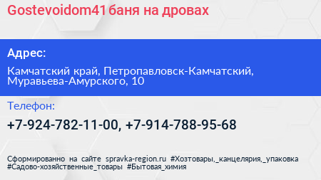 Gostevoidom41, баня на дровах по адресу Камчатский край, Петропавловск-Камчатский, Муравьева-Амурского, 10 в дальнейшем Организация, размещена в следующих категориях: