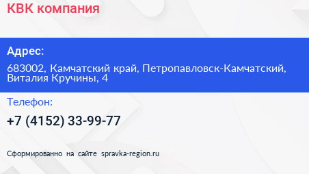 КВК, компания по адресу 683002, Камчатский край, Петропавловск-Камчатский, Виталия Кручины, 4 в дальнейшем Организация, размещена в следующих категориях: