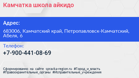 Камчатка, школа айкидо по адресу 683006, Камчатский край, Петропавловск-Камчатский, Абеля, 6 в дальнейшем Организация, размещена в следующих категориях: