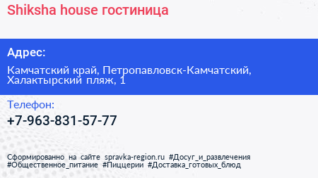Shiksha house, гостиница по адресу Камчатский край, Петропавловск-Камчатский, Халактырский пляж, 1 в дальнейшем Организация, размещена в следующих категориях: