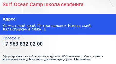 Surf Ocean Camp, школа серфинга по адресу Камчатский край, Петропавловск-Камчатский, Халактырский пляж, 1 в дальнейшем Организация, размещена в следующих категориях:
