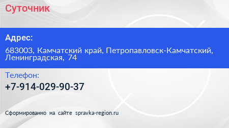 Суточник по адресу 683003, Камчатский край, Петропавловск-Камчатский, Ленинградская, 74 в дальнейшем Организация, размещена в следующих категориях: