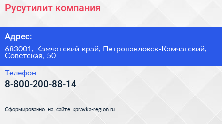Русутилит, компания по адресу 683001, Камчатский край, Петропавловск-Камчатский, Советская, 50 в дальнейшем Организация, размещена в следующих категориях: