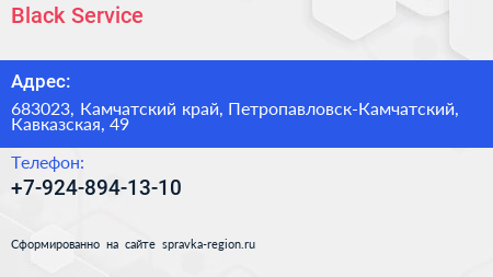 Black-Service по адресу 683023, Камчатский край, Петропавловск-Камчатский, Кавказская, 49 в дальнейшем Организация, размещена в следующих категориях: