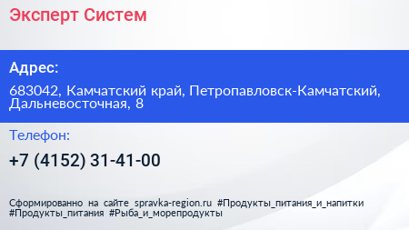 Эксперт Систем по адресу 683042, Камчатский край, Петропавловск-Камчатский, Дальневосточная, 8 в дальнейшем Организация, размещена в следующих категориях: