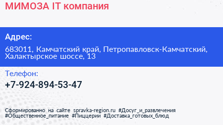 МИМОЗА, IT-компания по адресу 683011, Камчатский край, Петропавловск-Камчатский, Халактырское шоссе, 13 в дальнейшем Организация, размещена в следующих категориях: