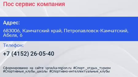 Пос-сервис, компания по адресу 683006, Камчатский край, Петропавловск-Камчатский, Абеля, 6 в дальнейшем Организация, размещена в следующих категориях: