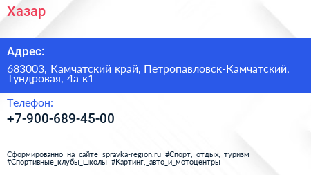 Хазар по адресу 683003, Камчатский край, Петропавловск-Камчатский, Тундровая, 4а к1 в дальнейшем Организация, размещена в следующих категориях: