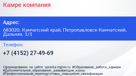 Камре, компания по адресу 683020, Камчатский край, Петропавловск-Камчатский, Дальняя, 1/1 в дальнейшем Организация, размещена в следующих категориях: