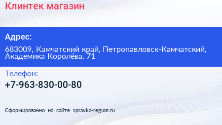 Клинтек, магазин по адресу 683009, Камчатский край, Петропавловск-Камчатский, Академика Королёва, 71 в дальнейшем Организация, размещена в следующих категориях: