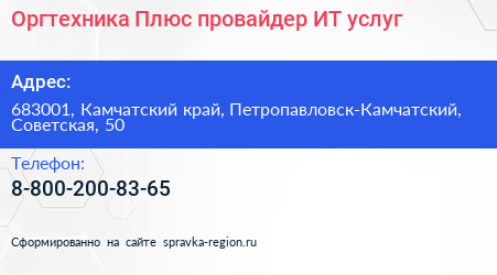 Оргтехника Плюс, провайдер ИТ услуг по адресу 683001, Камчатский край, Петропавловск-Камчатский, Советская, 50 в дальнейшем Организация, размещена в следующих категориях: