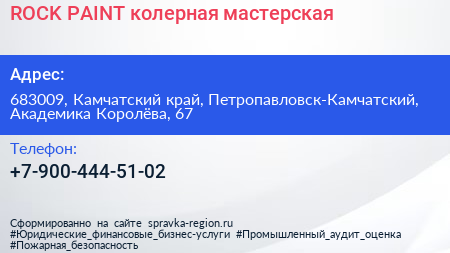 ROCK PAINT, колерная мастерская по адресу 683009, Камчатский край, Петропавловск-Камчатский, Академика Королёва, 67 в дальнейшем Организация, размещена в следующих категориях: